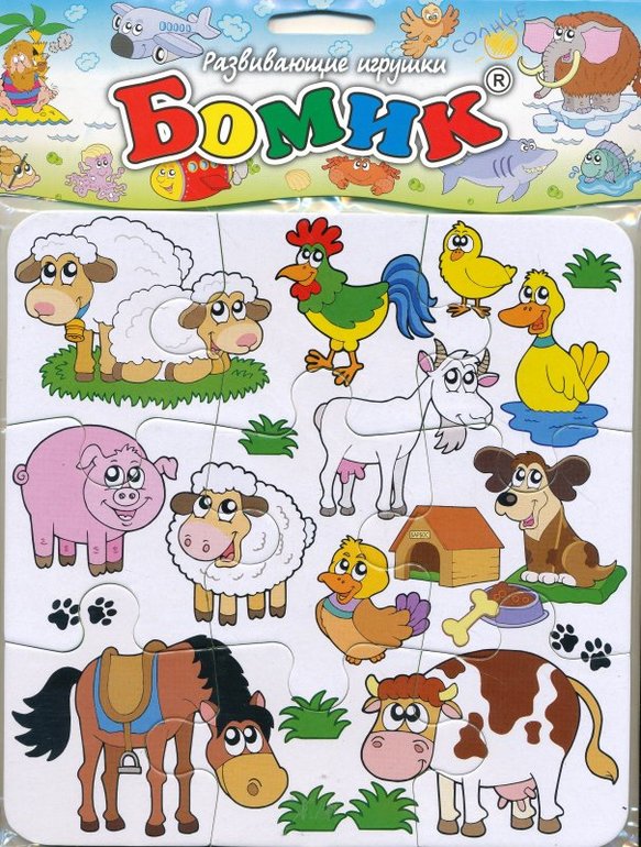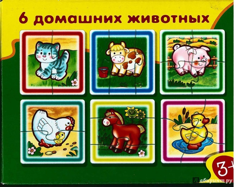 Собрать, посмотреть и изучить домашних животных, можно с помощью этих пазлов: кот, корова, свинья, курица с цыпленком, лошадь, утка. Состоят из 2-х, 3-х 4-х частей, разбитых горизонтально, вертикально и по диагонали. Красивые рисунки, милые животные, размер пазлов 10*10 см. Рекомендуем, качество хорошее.