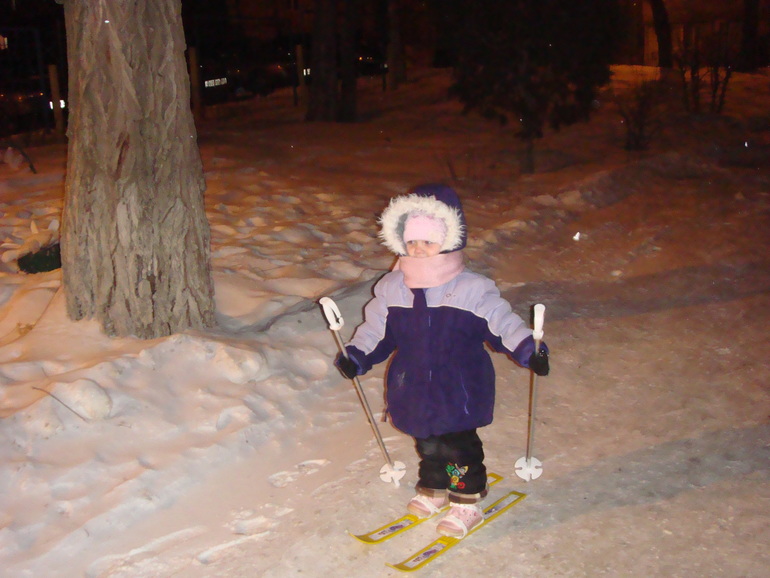 Мало нам гимнастки и танцев, решила мама и купила ребенку...лыжи. Да, гулять надо в любое время года. Но на санках уже наскучило, а так новое развлечение вышло. Эх, теперь бы всей семье на лыжи встать.
