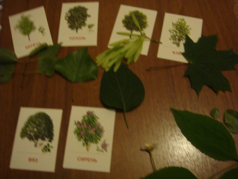Дома уже постарались подобрать листики к карточкам. Тут конечно с моей помощью.