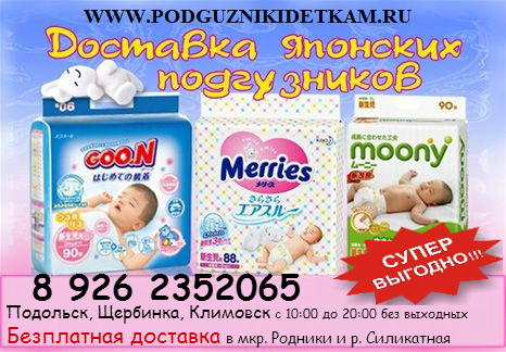 Японские подгузники Merries 1250, Moony 1100, Goon 1250 Подольск, Ерино, Щербинка, Климовск, Домодед
