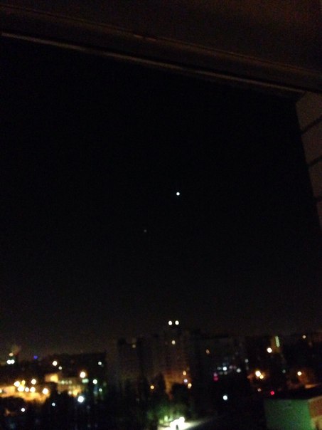 Штор у нас пока нет, а сплю я с краю на кровати так что, не вставая с постели, вижу окно и небо. Вот уже которую ночь подряд просыпаюсь и резко бросается в глаза очень большая и яркая "звезда" которая светит прямо на меня когда я лежу. Просыпаюсь обычно около 4-5. Не поленилась подойти к окну и порассматривать. Небо ясное, звезды есть, а эта прям огромная и яркая. Так зацепила меня, что наверно специально уже просыпаюсь чтоб ее увидеть. Покопалась в интернете и все стало ясно: самый яркий объект ночного неба после Луны - планета Венера, ее еще называют утренняя звезда, так как встает она часа в 3-4 утра и до восхода солнца, даже на заре ее еще видно. Она всегда на востоке, плавно перемещается к юго-востоку, наши окна как раз в эту сторону. Второй по яркости объект - Юпитер. Вчера ночью я как обычно проснулась в 5 и пошла к окну любоваться на Венеру. Ниже ее и левее была еще яркая звезда а рядом с ней (прям близко) розовато-оранжевая точка, на которую я почему-то сразу подумала - Марс, потому что только он и еще одна звезда дают такой цвет и всё. Сфоткала на телефон (жуть как получилось в темноте) и легла. Так и не уснула до 6, потом решила искать инфо о положении звезд и планет 17.10.2015. Это действительно под Венерой были Юпитер с Марсом. Девочки, оказывается сейчас идет малый парад планет, в результате которого 4 планеты (еще и Меркурий) оказались в одной "кучке" на минимальном расстоянии друг от друга. Про этот парад можете подробнее почитать в инете. Это волшебно.