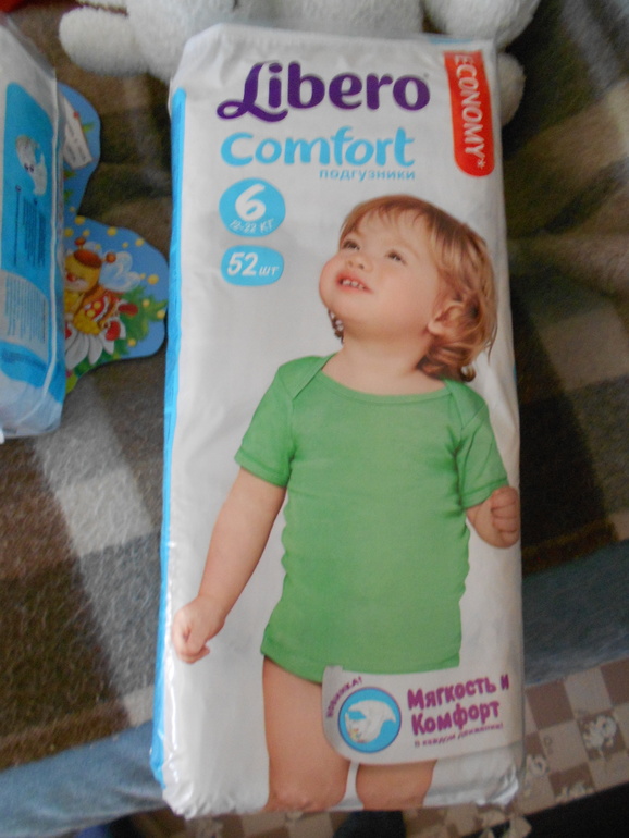 1) 1 пачка (52 шт.) Libero Comfort Economy р-р 6 (12-22 кг). Не вскрыта. ОС 900 руб.