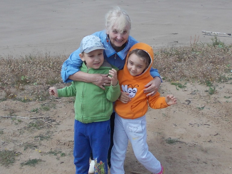 На фото наша бабушка (точнее прабабушка) с внуками.