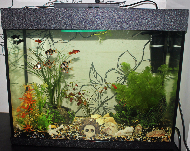 Дело в том,что когда Темик был у друзей,у них там был небольшой аквариум с одной рыбкой,Темик ее кормил и все время разговаривал с ней) вот они и решили преподнести такой вот сюрприз))Так что теперь у нас дома живут рыбки))