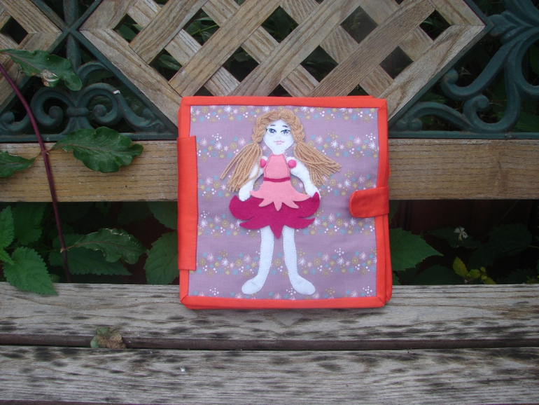 Закрывается на магнитный замочек. На обложке куколка, ей можно менять платья и туфельки, закрывать глаза ручками .Вот только туфельки для фотосессии доча не отдала, по этому сфотографировала без них.В конце обложки есть карман, куда можно положить мелкие детали.