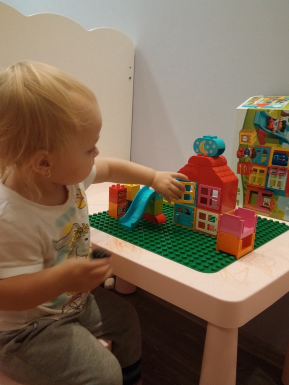 Приближался день рождения моей Ульяночки и мы все думали что же подарить... решили что лего это будет отличный подарок и купили сами и заказали друзьям тоже несколько наборов. Мне было так интересно понравится ей или нет, что я не выдержала и достала один из наборов раньше на 2 дня. Какое счастье было у ребенка когда она увидела домик, фигурки мальчика и девочки, горку. Сначала мы катали с горки ребят. Потом укладывали их спать, но больше всего ей понравилось открывать окошко и сажать ребят в домик. Уж если ребенок рад, то и мама рада вдвойне! Теперь решено на новый год обязательно купить набор лесной заповедник!