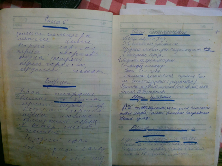 По поводу книги рецептов: у меня есть книга 1980-х годов, которую я начала заполнять, когда мне было 12 лет. Она уже изгвазданная, но первые рецепты я записывала в нее, еще на уроках труда. И в ней много почерков моей мамы, моих подруг., которые сейчас живут далеко от меня. Она заляпанная, но я ее активно использую. И не хочу с ней расставаться. Но в ней нет колец и она страшненькая….