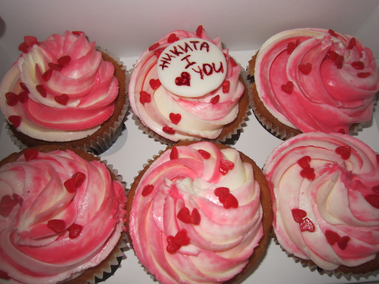 Никита отвёз Алису к моим родителям и на обратном пути привёз мне шикарные розы. А суть позже привезли капкейки, которые я заказывала для Никиты. Очень забавно, что крем на капкейках и Розы получились одинакового цвета)))) они вкусные! Очень-очень. Я заказала черничные, а крем на основе сливок и маскарпоне. Мммммммм!