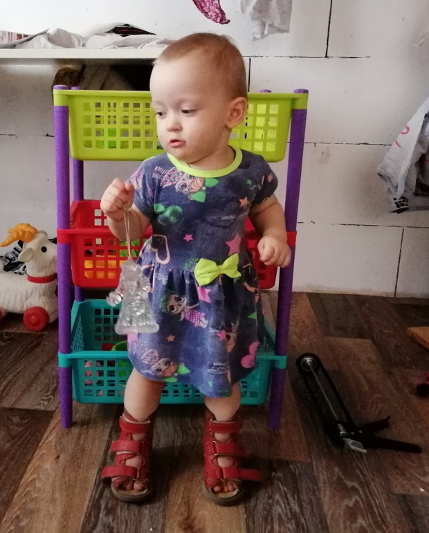 Садится сама и сидит на полу(недавно стала) ходит за 2 руки, полностью не выпремляется. Прошли 2 курса лфк по три недели. Может несколько секунд удержать равновесие стоя одна, правда чуть приседает и сводит колени. Рисует каля-маля на полу. Засыпает сама...