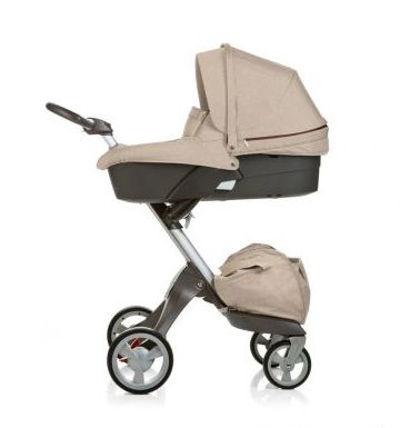 2) Коляска - Stokke Xplory. Выбор коляски был для меня мучителен. Сначала хотела Бугабу, они очень понравились внешне, но оказались для моего роста немного низковаты, хотя, говорят, дело привычки. Стокке конечно качественны и высокие, но внешний дизайн не совсем то, что я представляла... В общем, уже не рассуждаю на эту тему. У нас она цвета беж. В комплекте люлька и прогулка. Вот такое:
