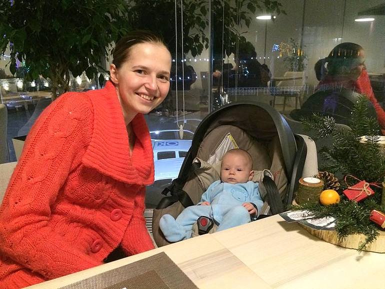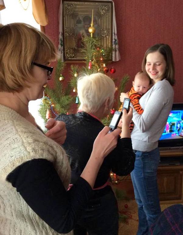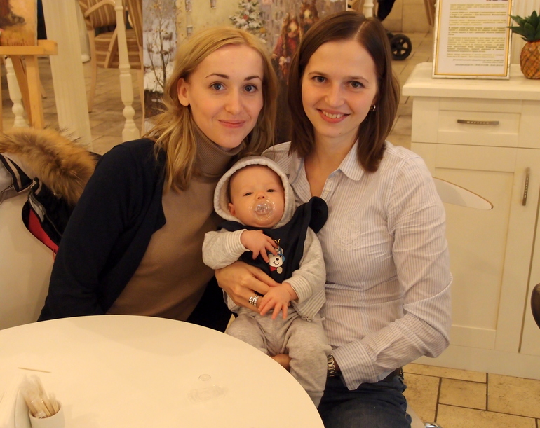 В гостях. В гостях было хорошо, но дома, как говорится, все равно лучше. Столько людей сразу Ваня еще не видел в жизни, а тем более столько людей, желающих его затискать и зацеловать. Но я утрирую, конечно. Родители были осторожны и не набрасывались сразу, давали ребенку привыкнуть к своему присутствию. Обе бабушки пытались научить меня его купать, у них правда тоже ничего не получилось. С Ваней я пару несколько раз выезжала в город в кафе встретится с друзьями, ну то есть муж меня вывозил, с коляской я вряд ли бы смогла на транспорте. А еще зима! Пусть пару дней, но все же со снегом и морозом до -18!!! В Украине смогли реализовать 99 процентов своих планов, только на одну встречу я не смогла поехать, потому что у Вани разыгралась жуткая истерика в гостях у моей крестной и мы вынуждены были поехать домой после часу безрезультатных утешений. Даже сейчас не могу понять, что тогда произошло, он никогда до этого и после себя так не вел... Ну а все остальное было отлично - подарки, друзья, родственники и праздники)