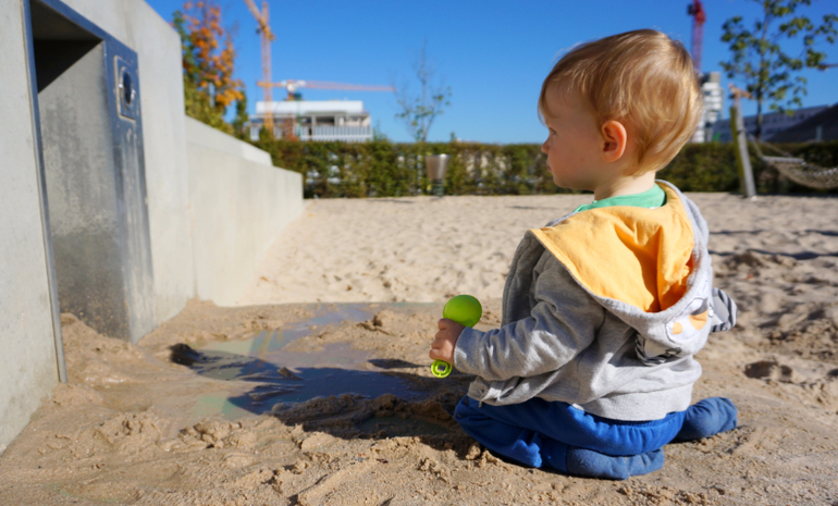 Почему не изобрели какой ни будь специальный костюм для песочницы?)))) водичку с собой приносите?