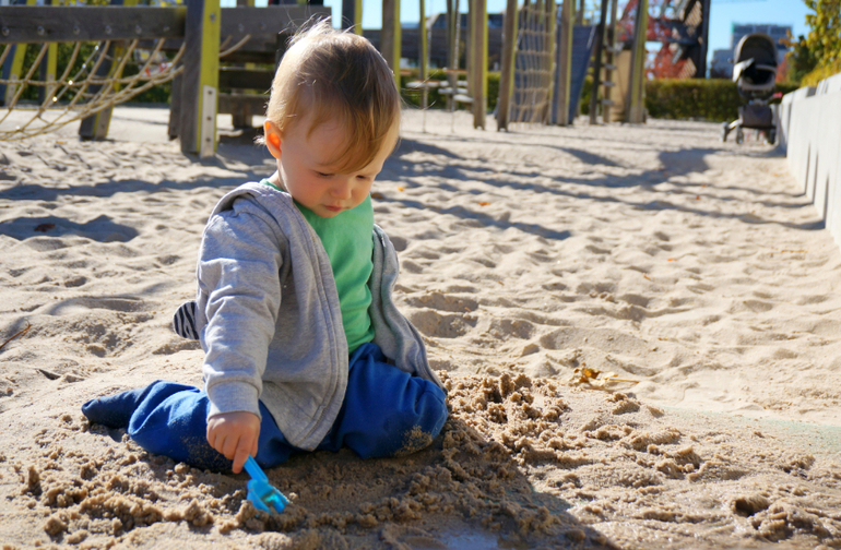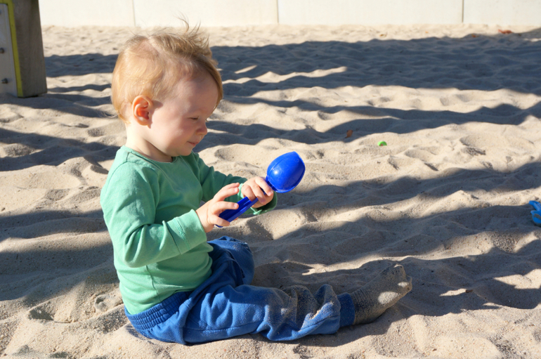 Детей там редко много. Часто вообще никого. Раздолье! Ване нравится. Мне - нет. Особенно не люблю вытряхивать песок из всех (его и моих) штанов, обуви... Потом еще ходить по квартире и чувствовать под ногами песчинки. Но детям так нужен этот опыт. Поэтому, переступив через свое "фу" - я согласилась и почти каждый день мы ходим копать. Кстати, песок Ваня не ест. Слава богу, хоть это не напрягает.