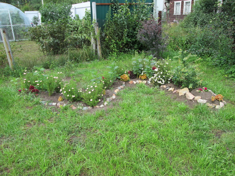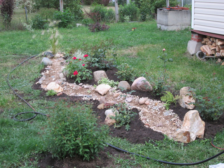 Розы. Пересадила то что росло по участку в одно место и сделала что-то типа сухого ручья.