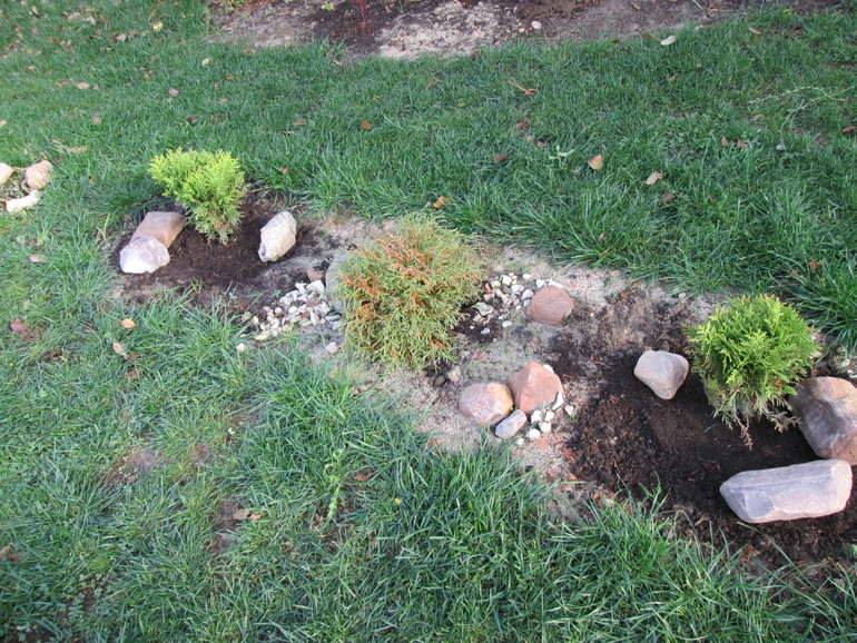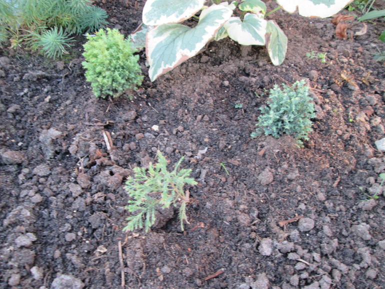 Хвойники - очень молоденькие, надеюсь что выживут и вырастут)) Якобы карликовая ель, но похожа на кедр иголками.