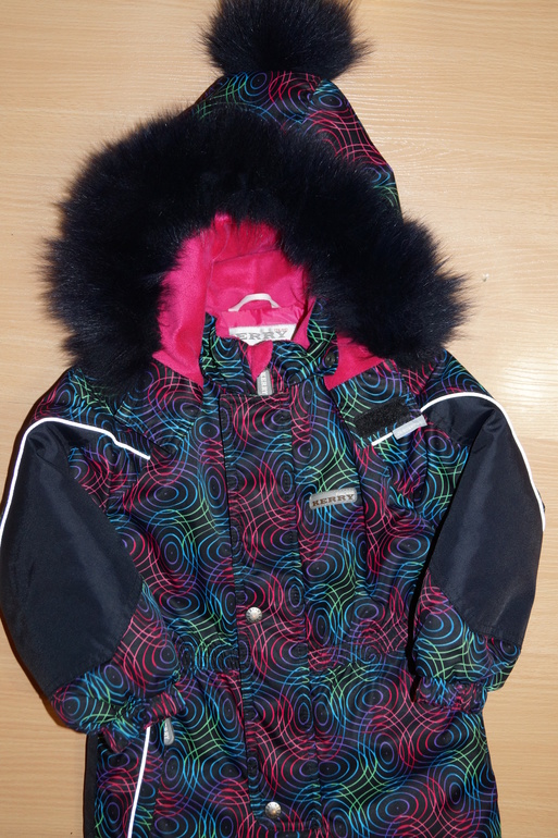 В хорошем состоянии. Опушку на кап пришили сами, резиночки на брюки тоже. ОЧЕНЬ теплый и легкий!