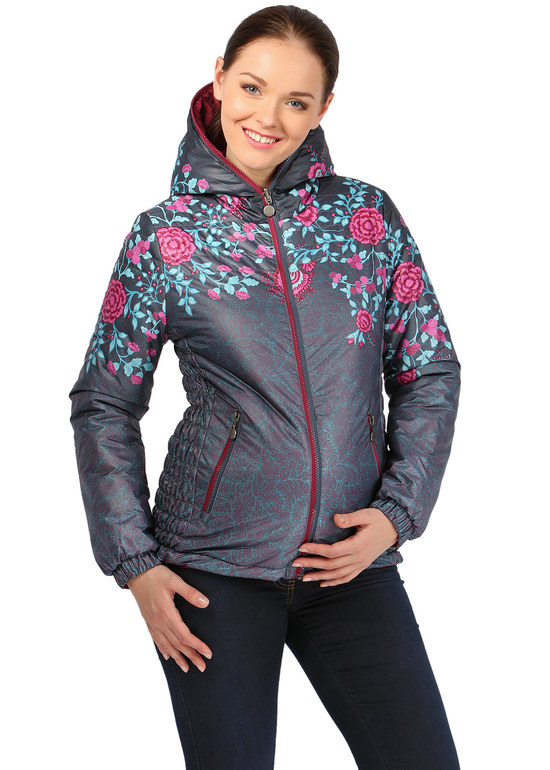 За счет боковых резиночек куртка хорошо тянется на беременный живот.
