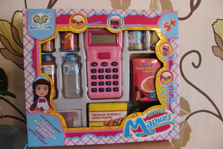 Очень понравилась касса - пикает, огонёчки мигают, калькулятор считает, все по настоящему) Дооовооольная)))