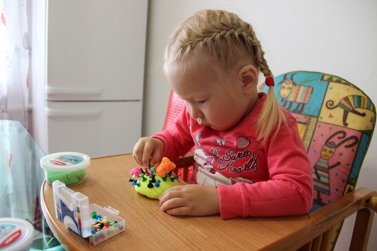 Пока шедевр сох мы лепили опять ежика) иголки вылепить у нас не получалось но мы девушки находчивые)