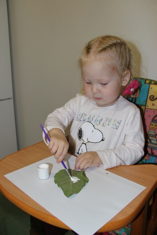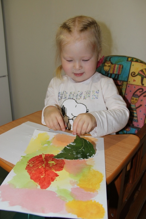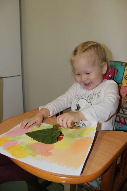 Когда основа подсохла, красили листья и шлепали по листу) Радости)))