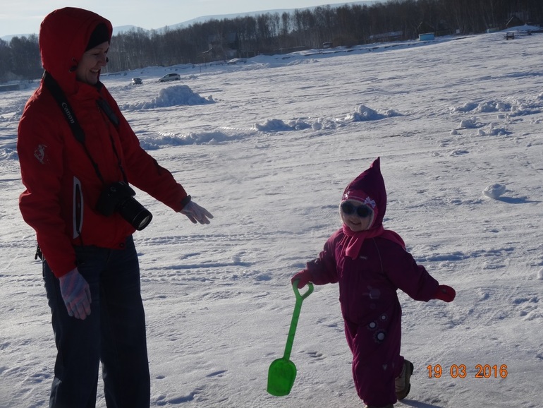 Сегодня садик не работает поэтому мы дома, пока Марианна отсыпается я наконец то разобрала фотографии с рыбалки на которой мы были аж 19 марта 2016г. Это была первая рыбалка в моей жизни ну и у Марианны тоже. Рыбалка была организована нашим производственным отделением и она традиционная каждый год, недалеко от нас на Байкале расположились коллективы шиферного и цементного заводов потом и ТГК14 подтянулись, в общем забава для всех.