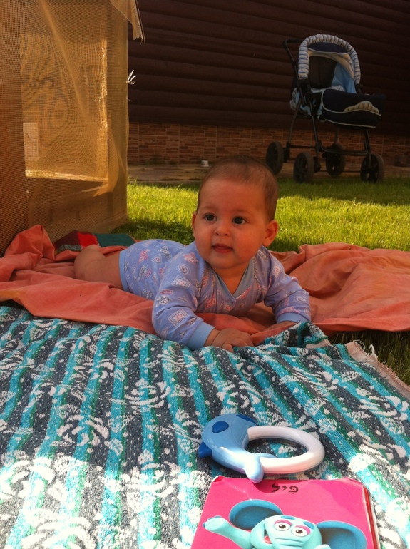 - старательно учимся ползать, пока мы похожи на морских котиков в своих попытках, но надежды не теряем. В ходунки я не тороплюсь его ставить, говорят лучше для спины сначала научится ползать.