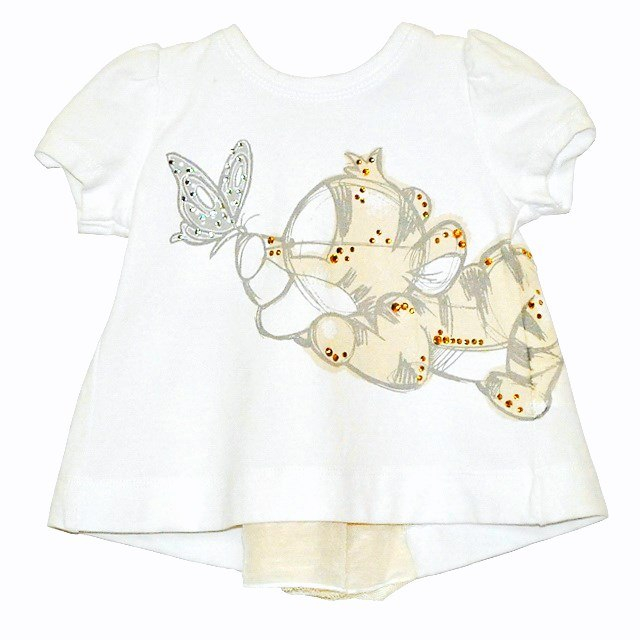2) Блузка Trussardi. Состав: 94%rayon6%spandex. Украшена кристаллами и бантиками с фирменным принтом. Размер 3 мес, 6 мес. Цена: 4200р 1260р.