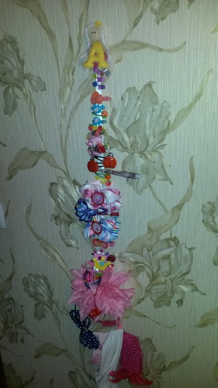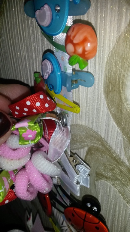 Для резинок и заколок (резинки держатся на ленточке с кнопкой. При надобности отстегнули и резиночку нужную взяли.)