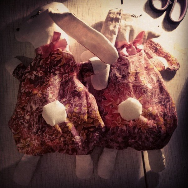 И вот ...руки чешутся,а времени нет...но я не могу не сшить что-нибудь для дочи . И вуаля ...Мои зайцы )))