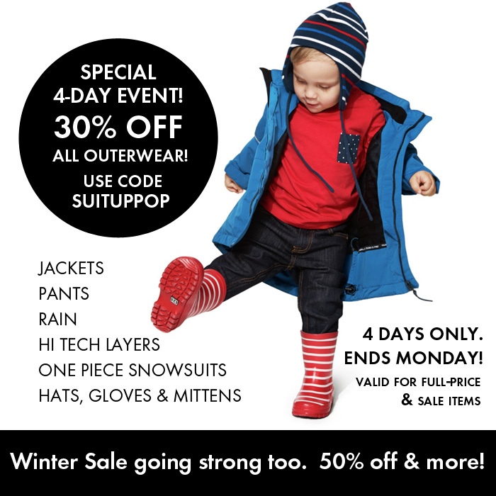 Скидка 30% на верхнюю одежду в Polarn O. Pyret включая вещи на распродаже. Код скидки SUITUPPOP.