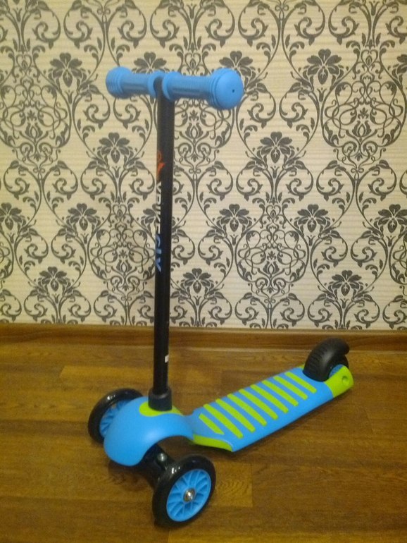 Ну и самокат. Вручен был немного раньше, уже освоен. Только поворачивать пока не умеет.
