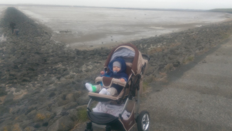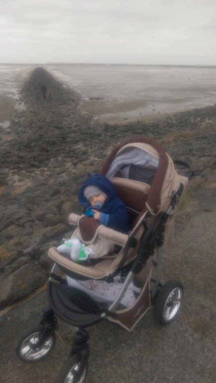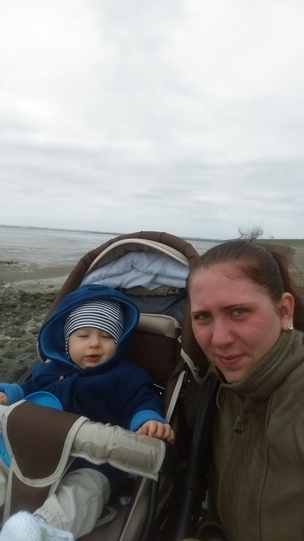 ,Костик подарил папе рисунок(рисовал сам),мама (тобиш я))) подарила парфюм...блин ну что еще на такой праздник дарят то?))вообщем фантазии не хватило,ну а макс порадовал своей улыбкой)))ну а папа после завтрака сказал всем собираться и что мы едем-на пикник,усадилэнас в машину и поехали....едем едем,я уже вопросы задаю мол куда едем то,а в ответ получаю мол сюрприз)))привез нас на северное море.Погуляли,детки разглядывали всё,костик собирал ракушки(море как-раз ушло),но когда снова будет прилив ждать не стали(а это как известно происходит раз в 4-5 часов),нагулялись довольные и отправились домой