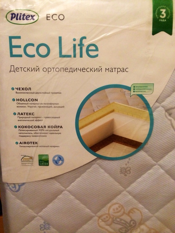 Беспружинный, двусторонний матрас EcoLife ЭКФ-01 средней степени жесткости, ортопедический. В качестве основы матраса используется новый материал высокой плотности толщиной 10 см "Hollcon".