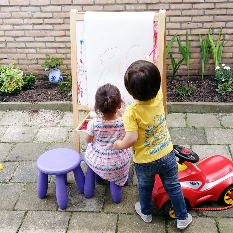 Моя подруга - смелая женщина, поэтому ей не слабо было купить детям мелки и выпустить их в сад. А ее мужу потом было не слабо оттирать шедевры экспрессионизма с плиток. А мне было очень слабо отстирывать перепачканную мелом одежду. Но деваться было некуда. Но больше мелки мы детям дома не выдаем.