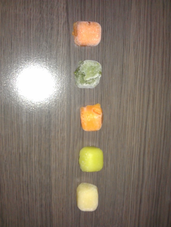 Каждую субботу покупаю у фермеров овощи. Варю, блендером перемалываю, замораживаю кубиками. После этого складываю в пакетки и храню в морозилке. Всю неделю каждый день вытаскиваю четыре кубика в разных комбинациях (это как раз 50г), размораживаю и кормлю его величество:)) удобно!