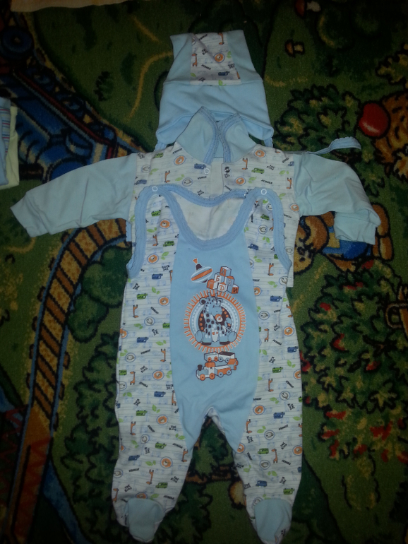 14.новый костюмчик кофточка+ползунки+шапочка -300р