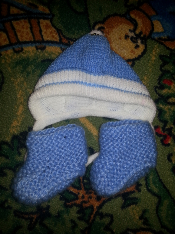 18.вязанные(покупные)шапочка+носочки(одевали на выписку)-200р