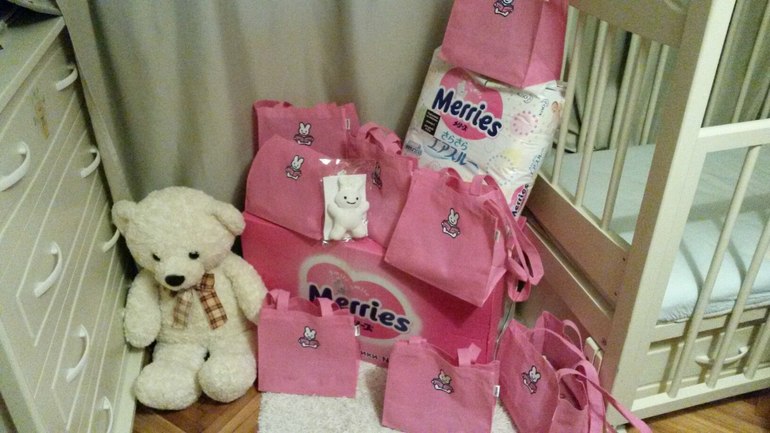 Всем привет! Спешу поделиться отличной новостью! Я получила первый свой #Buzz-kit с легендарными детскими подгузниками #Merries из Японии. Я была ошарашена, когда увидела такую гигантскую коробку! Внутри были 10 сумочек с подгузниками, платочками и наклейками для подруг и огромная! пачка (82 шт) для меня, а ещё милашка зайка :)