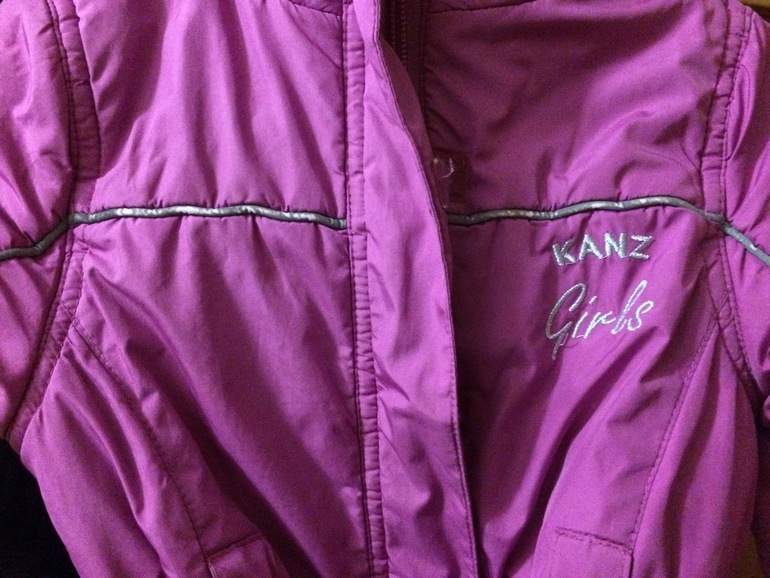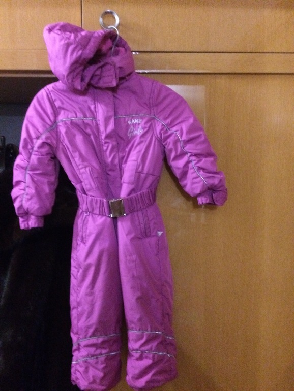 Наполнитель синтепон, на груди и спине утеплен флисом. Горло хорошо закрывается, на руках и ногах резинки. Носили с поддевой до -5. Из недостатков: на бляжке потертости, но их если не всматриваться, не видно и немного потерты светоотражающие полоски. А так в отличном состоянии.
