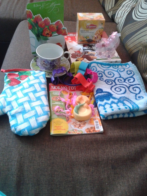 Мой любимый журнал " Люблю готовить", формочки для печенья ( на выходных буду кулинарить ).Нежное полотенце и прихватка )))