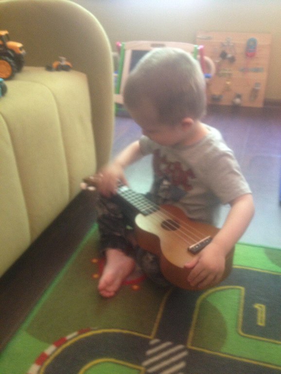Пока доделовался обед, решила закрепить наш воскресный поход на джаз концерт. Достала карточики с саксофоном, гитарой, пианино. Показала карточки. По очереди включала звук каждого из инструментов. Яр достал свою гитару, потом и пианинко детское и начал требовать у меня саксофон. Я говорю, ну нет ведь у нас, а он мне на дверь показывает, типа иди и достань))) В общем заказ принят, уже присмотрела на Акушерстве симпатичный и недорогой.