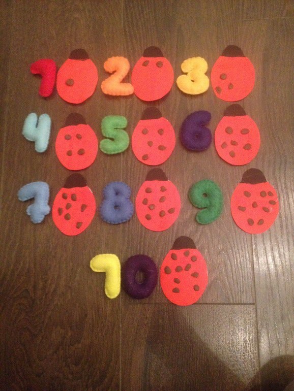 Зато согласился наклеивать пятнышки божьим коровкам. Учили цифры и счет.