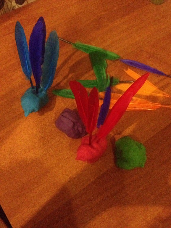 Делали птичек из теста и перьев. Потом я стала готовить ужин нам с мужем (уснула сегодня днем с Яром и ничего не успела). А у Яра начались творческие импровизации. Решил он сделать пирог для бегемота. Это, так сказать, по мотивом одного из наших любимых мультиков "Бегемот и компот". Смешал все кусочки теста, принес формочку и ножик. Сделал пирог, разрезал его. Покормил бегемота и практически Сниффа, хорошо я успела.