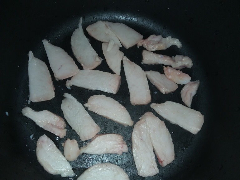 Обжарить свинину и телятину: