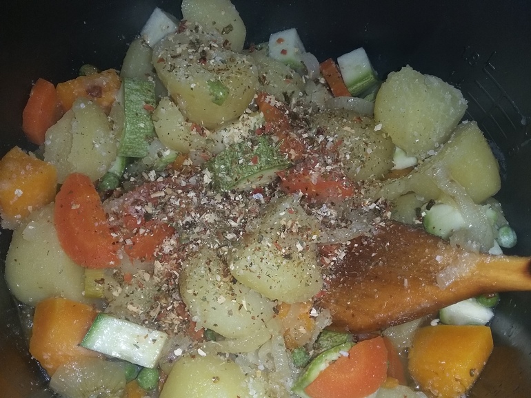Посолить, добавить овощную приправу: