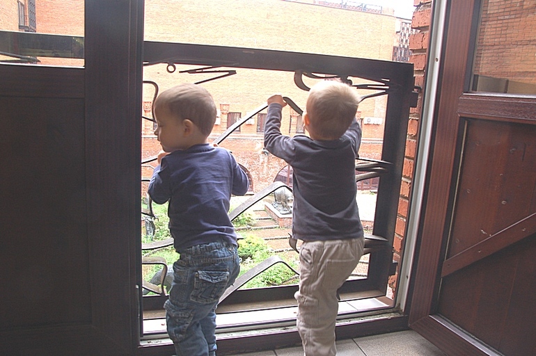 Дети, может, ничего и не поняли, но разглядывали все с удовольствием. Особенно на балконной решетке понравилось им висеть.
