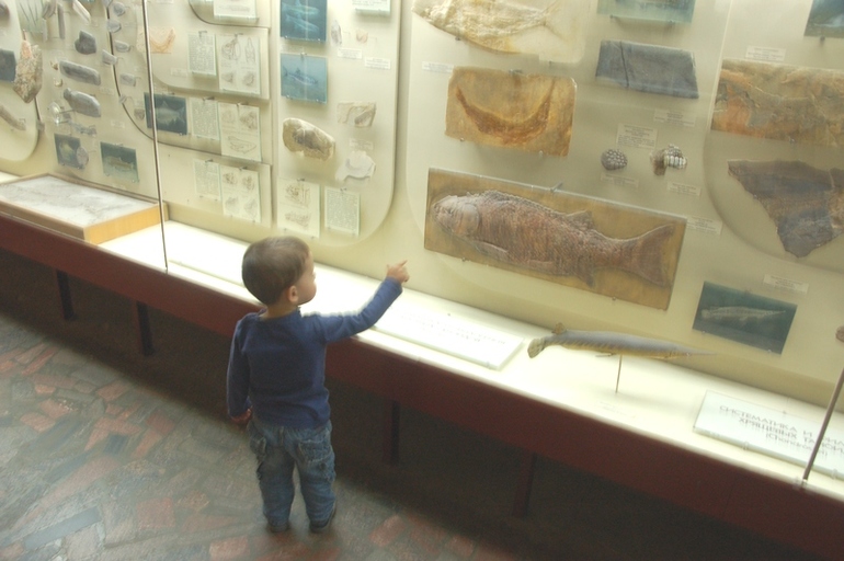 Началось всё с моей идеи съездить в Дарвиновский музей. Показалось, что детям в два годика будет уже интересно. Вечером с мужем поспорили на какую-то тему, я в сердцах случайно открыла на компе вместо Дарвиновского музея Палеонтологический, оставила на виду страницу с адресом, чтобы утром прочитал, куда нас везти. И поехали. Приезжаем к этому зданию, я вопрошаю - Сусанин, ты москвич или нет, куда это мы заехали? Муж честно отвечает - Палеонтологический музей, как ты и оставила адрес. И тут до меня доходит ))) Ну что ж, приехали, так приехали, пошли динозавров смотреть.