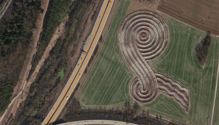 На самом деле это классический семиповоротный лабиринт - мистический знак, известный человечеству несколько тысячелетий. Такие лабиринты находят на всех пяти континентах. Пожалуй, самый известный рисунок можно увидеть на античных критских монетах в музее Ираклиона. Благодаря мифу о Минотавре, этот рисунок стал чуть ли не брендом острова. Здесь лабиринт дорисован до отпечатка пальца. Он имеет в длину 38 метров и находится в Хоув парке, Брайтон (Великобритания).