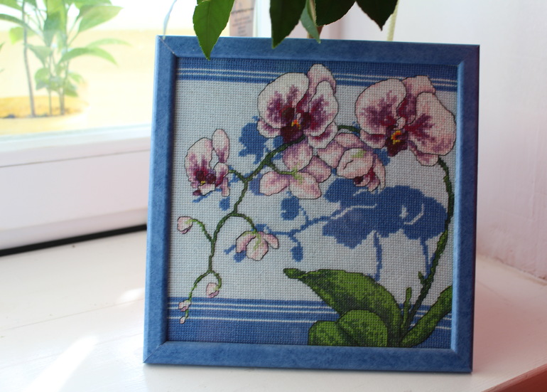 Спешу с вами поделиться радостью от вышитой работы. Вышивала для мамы орхидеи, нитки своим подбором, потому что хотела, чтобы были похожи на мамины цветы. И вот, что получилось
