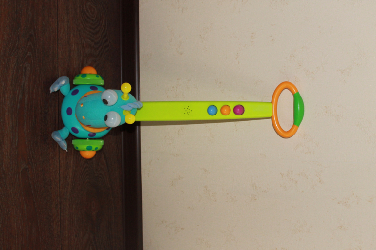Всё в отличном состоянии. всё работает. Веселая каталка динозаврик. при движении голова вращается, глаза мигают и играет музыка. Всё работает. Так же звук и свет можно отключить. Цена 500 руб.